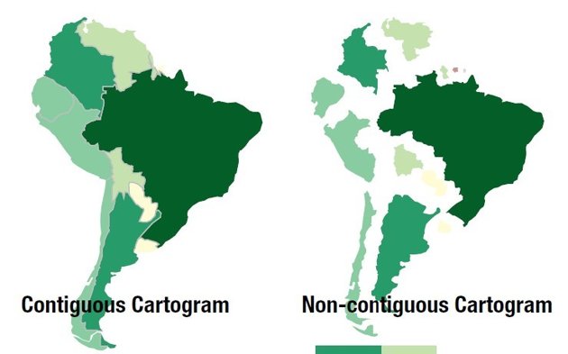 Contiguous and non-contiguous cartograms of South America. Kraak MJ et al. (2020)