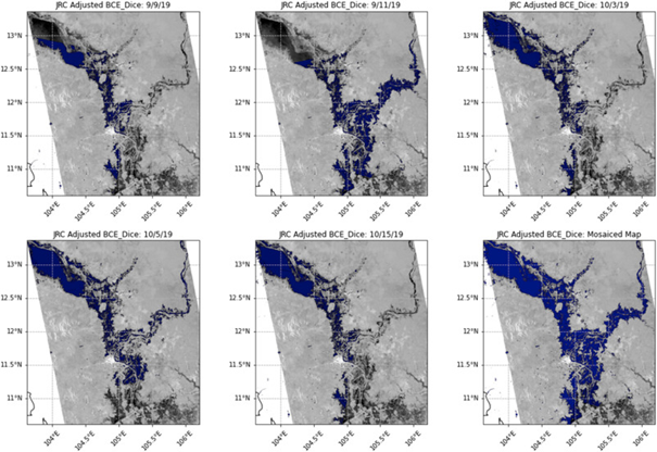 The other approach plots the pixels of an image onto a histogram and then divides them into two categories of 'more water-like' and 'less water-like'. These automatically labelled flooded image chips were then utilized to develop a Deep Learning flood mapping approach. The team tested different combinations and parameters until they developed a model that most accurately matched data on the ground in Cambodia and was able to detect flooded areas.